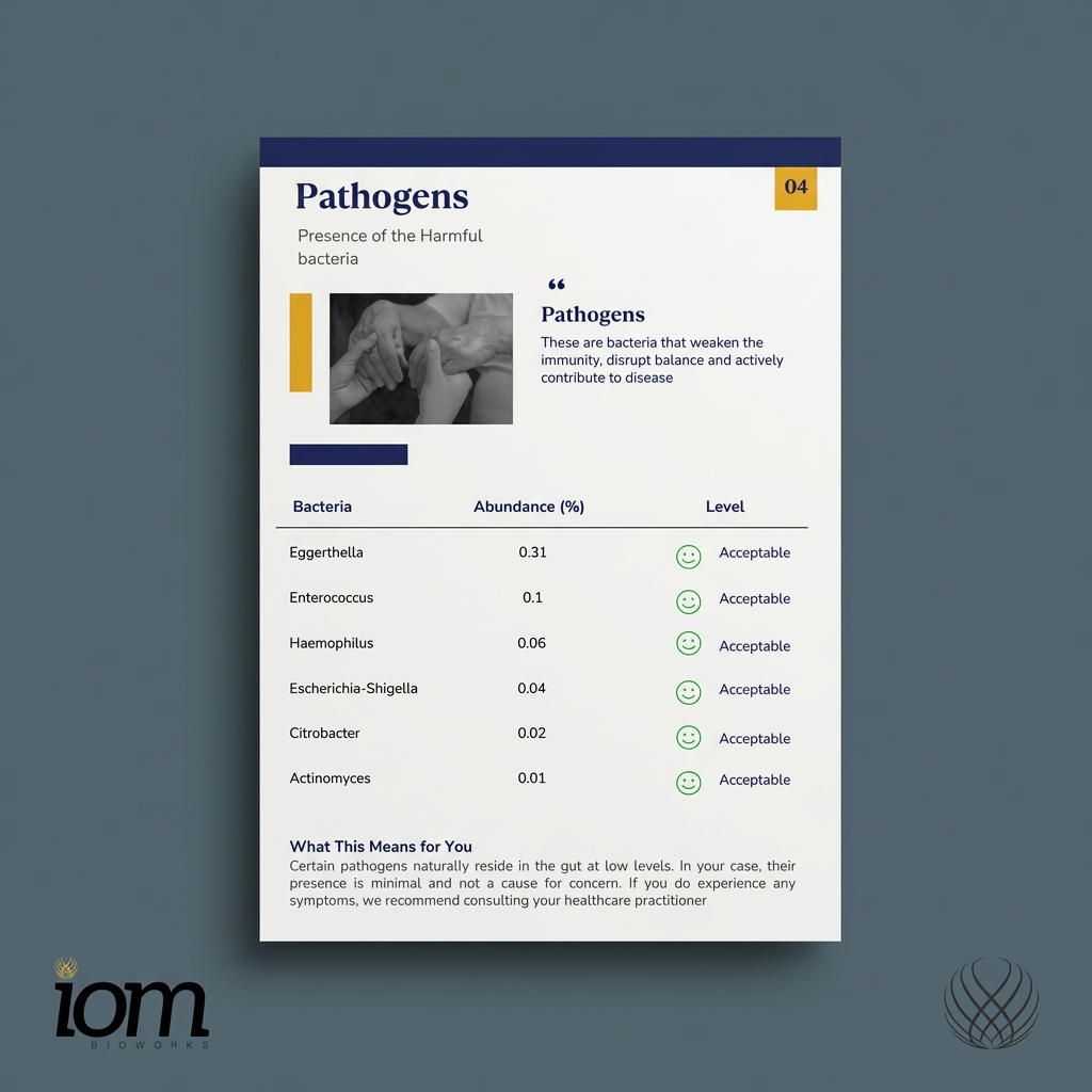 • Bacterial Assessment – measure the presence of disease-promoting bacteria (pathogens) and health-enhancing bacteria (probiotics)