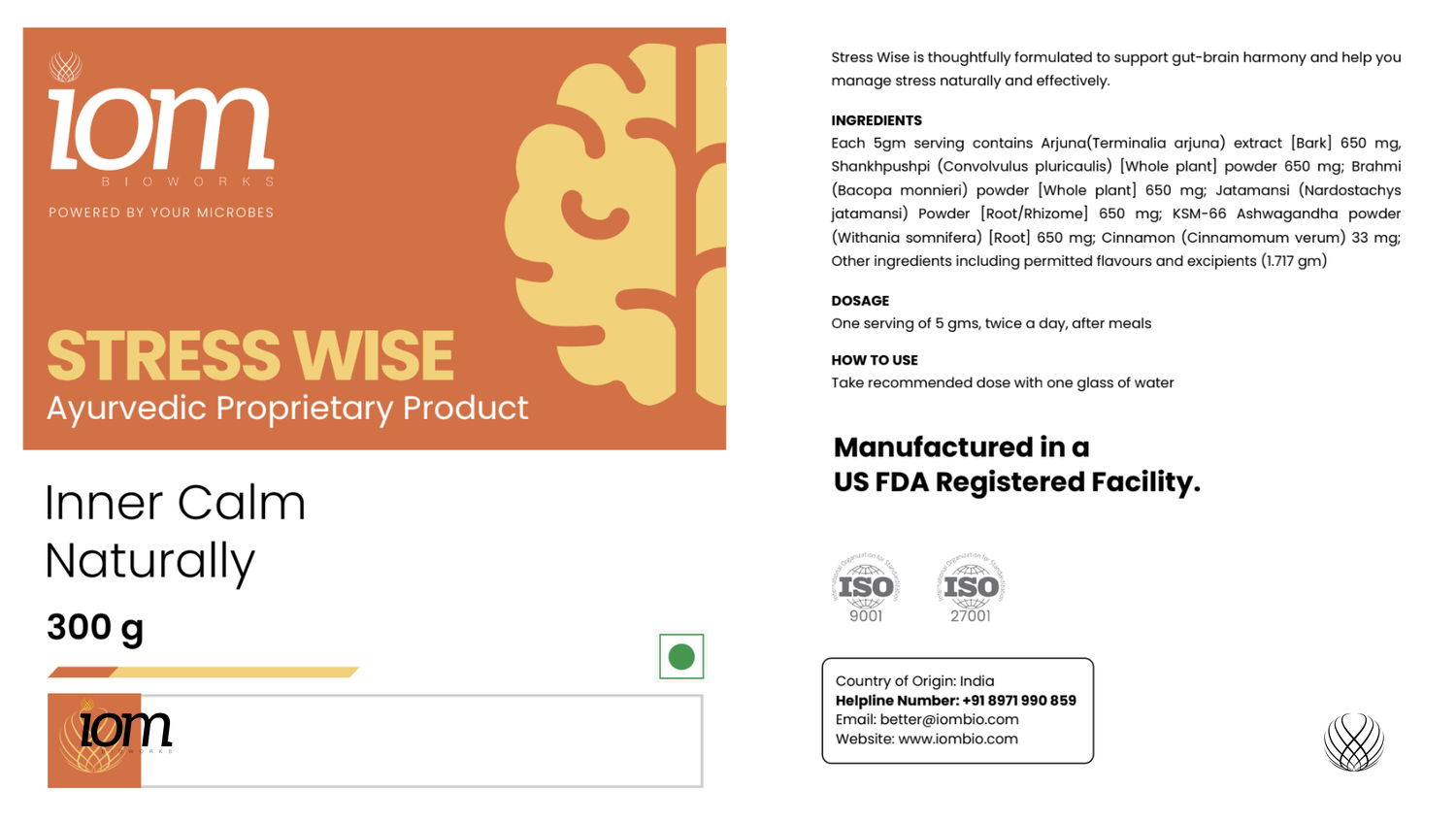 Its formulation brings together a considered blend of Ayurvedic adaptogens and cognitive nutrients- Arjuna supports cardiovascular resilience under stress, while Shankhpushpi, Brahmi, and Jatamansi are traditionally valued for calming the mind and supporting emotional steadiness. KSM-66 Ashwagandha adds clinically studied adaptogenic support to help moderate the stress response.